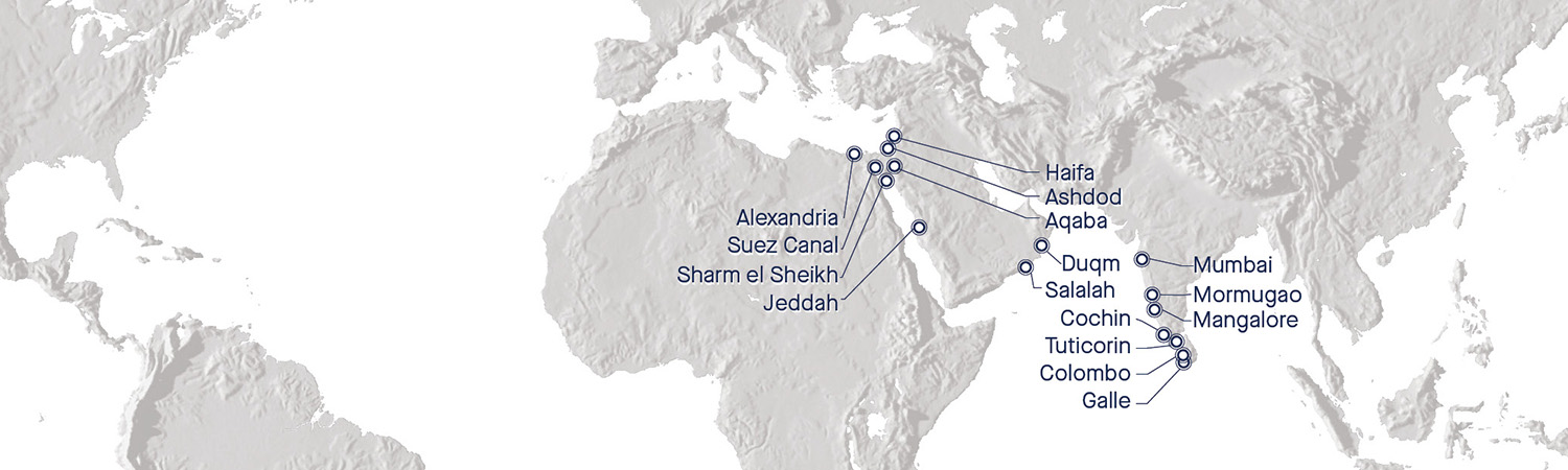 Set sail along the Indian Ocean’s storied coasts, where Sri Lanka and India’s regions reveal centuries of maritime history, spiritual landmarks, and hidden natural beauty. Wander serene beaches, vibrant markets, and secluded wildlife reserves. In the Middle East and Red Sea, explore Oman’s coastal traditions, Saudi Arabia’s timeless deserts, and Jordan’s iconic Rift Valley. Each port grants rare access, private excursions, and immersive cultural experiences designed exclusively for Residents & Guests. Throughout this stretch of the 2027 Journey, rich flavors, historic marvels, and inspiring landscapes bring history and adventure vividly to life.